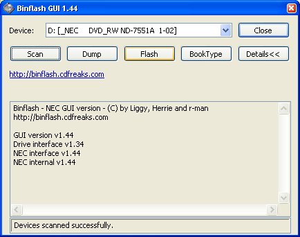 - necflash_wingui.zip per aggiornare il firmware del drive